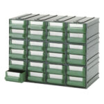 Cassettiera modulare componibile con corpo esterno in PP (Polietilene) copolimero caricato talco e 3 cassetti basculanti in PET (Polietilene Tereftalato) trasparente. I materiali utilizzato rendono la cassettiera resistente agli urti ed in grado di sopportare carichi elevati. I cassetti sono infrangibili e mantengono immutata la trasparenza nel tempo.