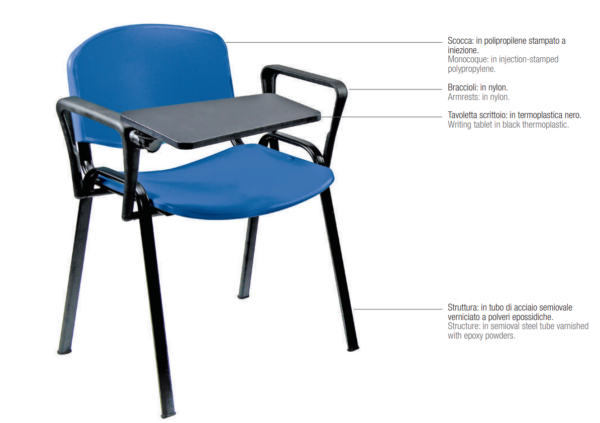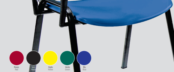Sedia fissa in polipropilene colore blu/giallo/nero/rosso/verde (da specificare al momento dell’ordine).