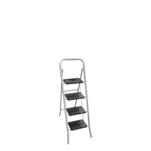 Sgabello d’acciaio in tubolare 20×15 mm. Gradini acciaio 20×30 cm. Verniciato con brillanti polveri epossidiche nei colori: Telaio grigio, gradini neri, plastiche arancio.